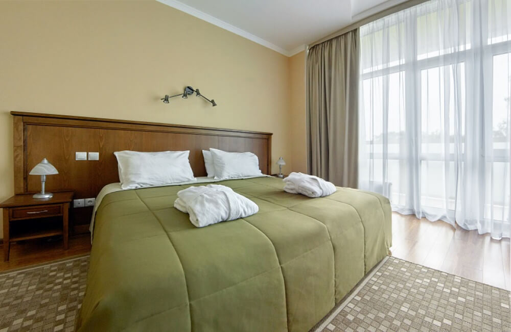Жилой комплекс санатория состоит из двух современных спальных корпусов, которые находятся на расстоянии 30 м друг от друга: 5-этажного корпуса №1 и 3-этажного корпуса №2. Одновременно в санатории могут отдохнуть и поправить свое здоровье больше 300 человек.