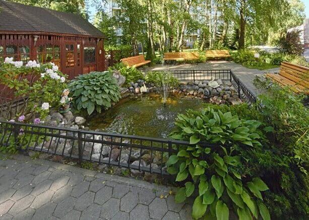 На прилегающей территории, составляющей 2 га, располагается летнее кафе, прогулочные дорожки, парковка, есть настольный теннис, тренажерный зал, площадки для игры в волейбол или бадминтон. Для юных гостей в санатории работает детская игровая комната в период летних и новогодних каникул.