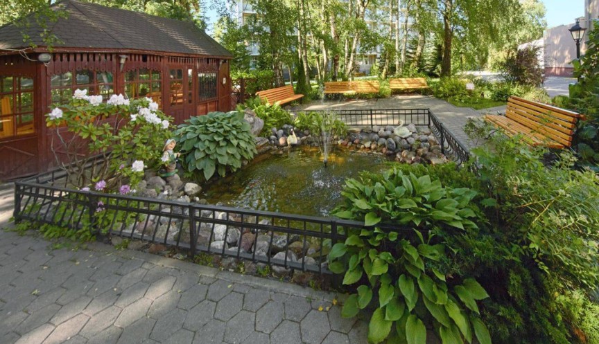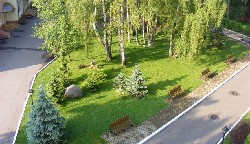 Территория санатория площадью 2 га ухоженная, зеленая, охраняемая. Корпуса окружены тенистыми аллеями с многочисленными беседками, где можно отдыхать и наслаждаться тишиной, пением птиц, цветущими растениями и деревьями Жилой комплекс санатория состоит из двух современных спальных корпусов, которые находятся на расстоянии 30 м друг от друга: 5-этажного корпуса №1 и 3-этажного корпуса №2.