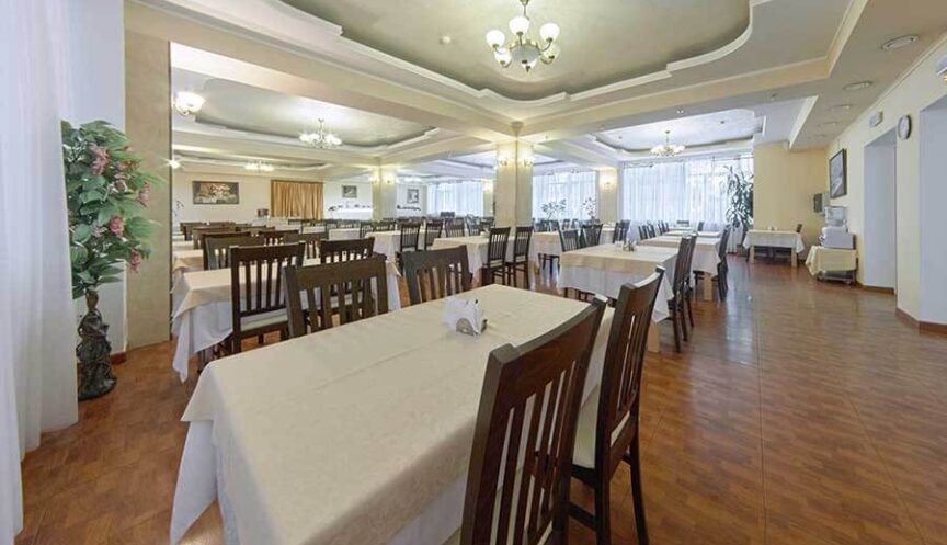 В санатории Янтарь Трёхразовый режим питания по системе шведский стол диетический, представленный диетами № 5,7,8,9,10,15